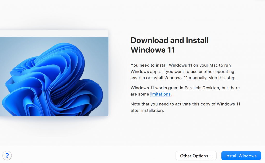 После добавления всех доступов у приложения, следующим шагом будет скачивание и установка Windows 11. Если у вас устройство Mac на процессоре M1 или на более новых процессорах серии M, то вы можете сразу нажать «Intsall Windows» и начнется автоматическое скачивание с установкой Windows