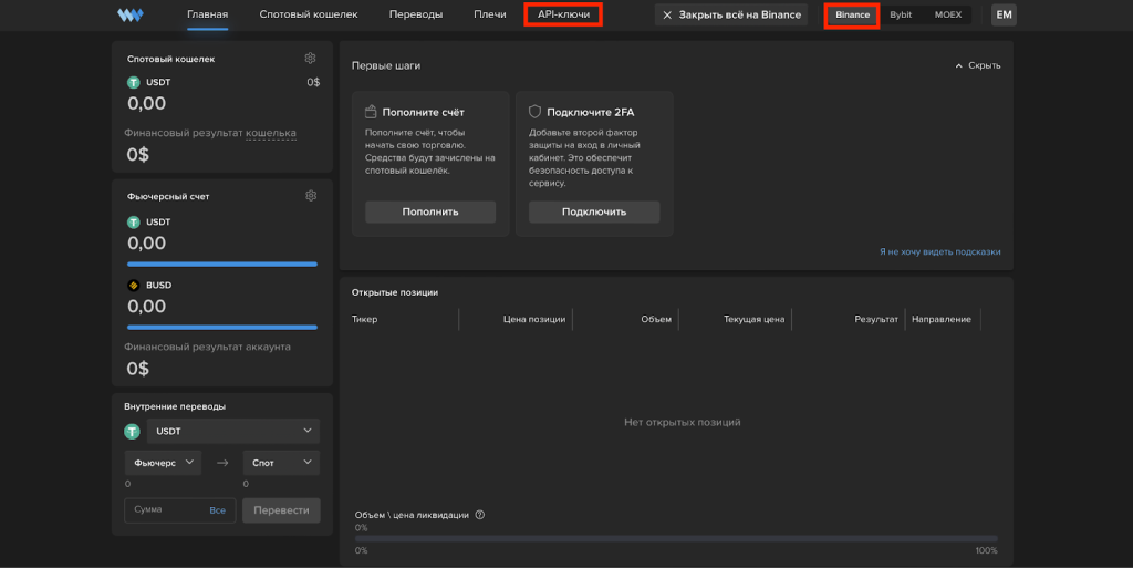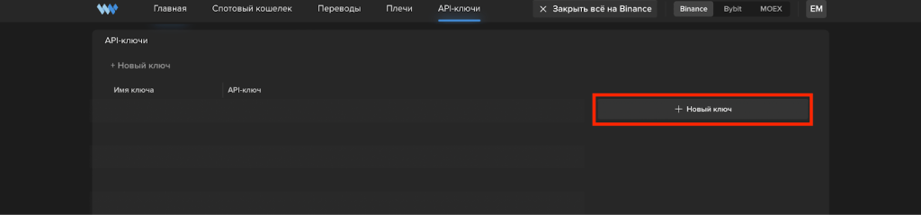 В личном кабинете WL Capital откройте раздел «Binance» и перейдите во вкладку «API-ключи».