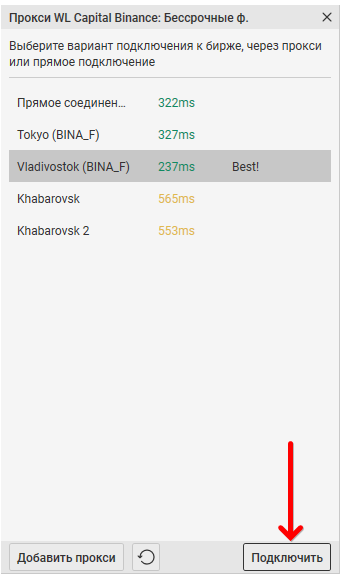 В окне выбора сервера выбираем пункт с пометкой «Best!» (наименьший пинг) и кликаем «Подключить«.