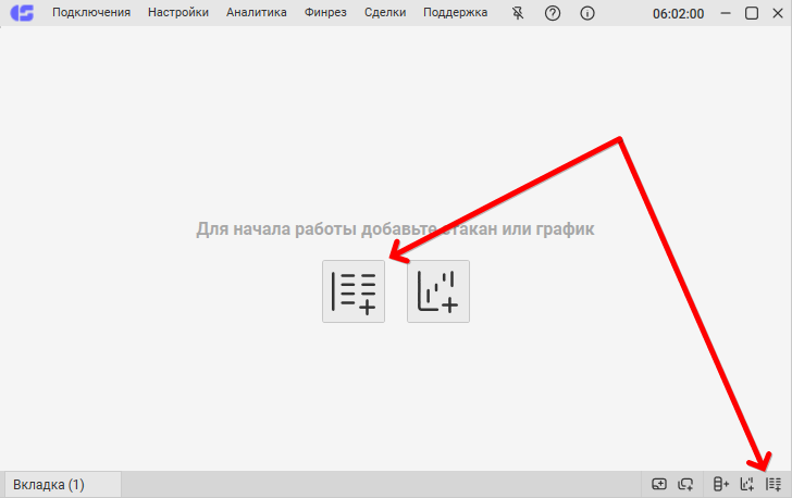 После настройки CScalp, добавляем новый стакан, кликнув на соответствующую иконку в центре или в контекстном меню. Видеоинструкцию по настройке CScalp вы найдете здесь.