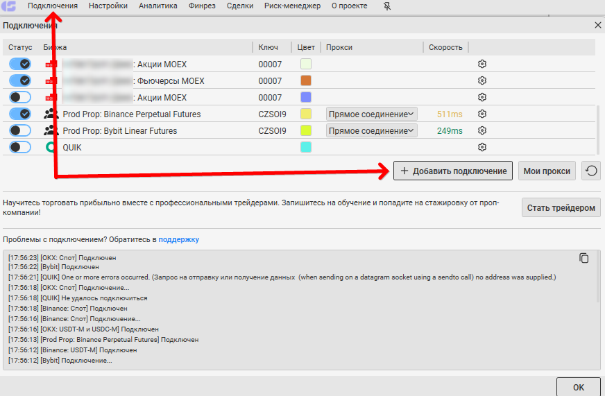 Переходим в раздел “Подключения” и кликаем “+ Добавить подключение”.