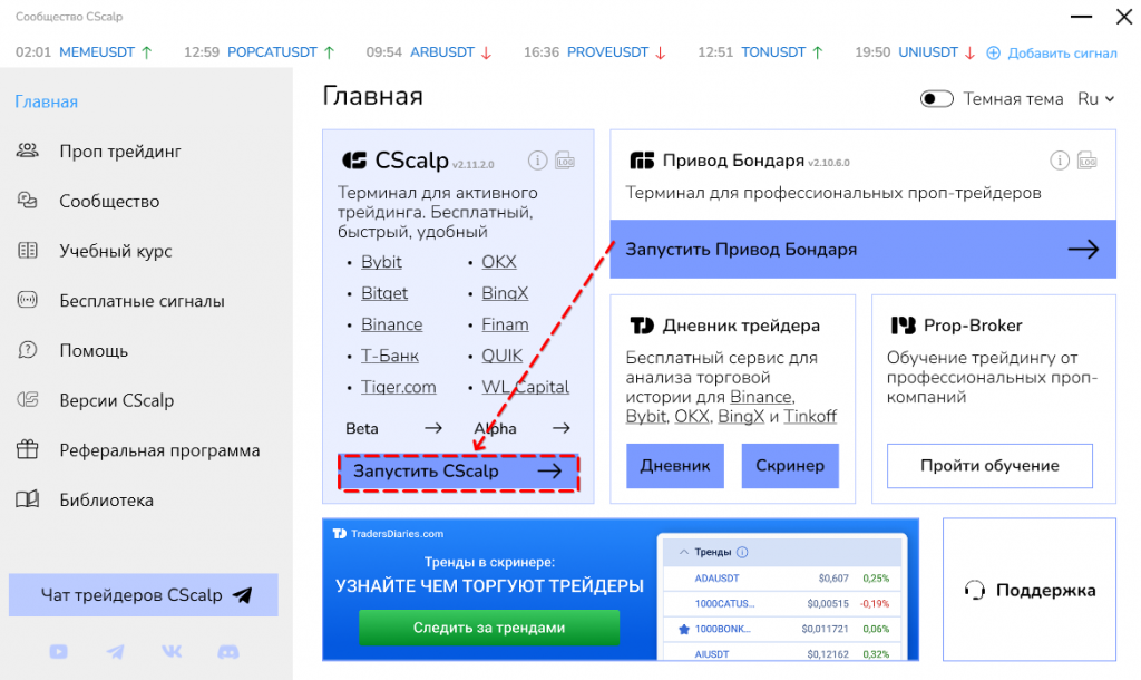 Запускаем FSR Launcher. В открывшемся окне кликаем «Запустить CScalp».