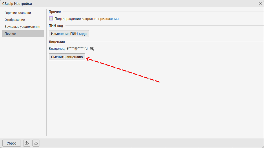 Если файл лицензии указан неверно, измените его: в пункте “Прочее” кликните “Сменить лицензию”. Если после этого подключиться не получилось, обратитесь в вашу проп-компанию для проверки корректности указания почты на стороне компании.