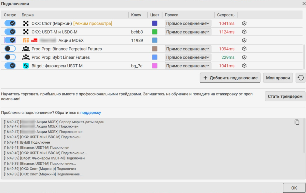 Чтобы сделать первую сделку в подключении Привод изучите статью Как сделать первые сделки в CScalp. Если столкнетесь с трудностями, напишите в поддержку – ответит «живой» сотрудник и поможет решить вашу проблему.