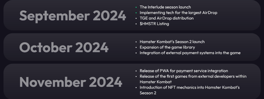 В сентябрьской версии дорожной карты разработчики расписали, что ожидается в предстоящие месяцы. Появились конкретные пункты об аирдропе, листинге и втором сезоне кликера.